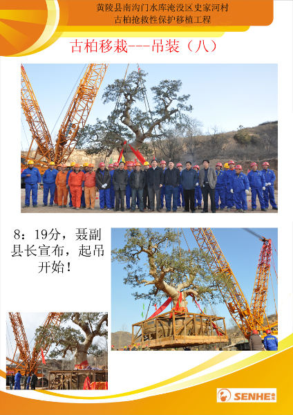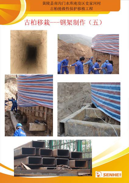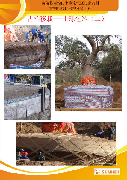 圖為我公司曾進(jìn)行的黃陵縣南溝門水庫(kù)淹沒區(qū)史家河村古柏?fù)尵刃员Wo(hù)移栽工程