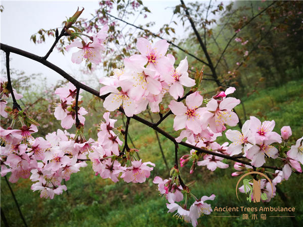 花淡紅色,花期3月,果期 5月